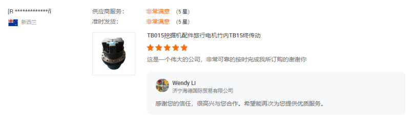 首頁 > 客戶評價 > 挖掘機配件